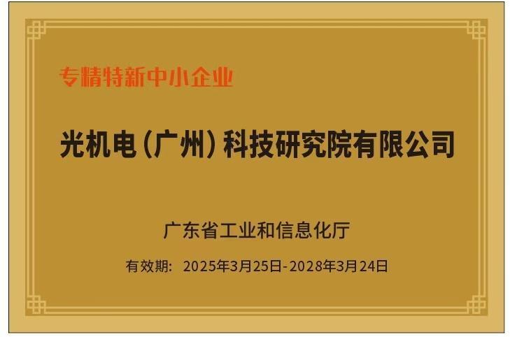 近日,經(jīng)廣州市工業(yè)和信息化局認定、廣東省工業(yè)和信息化廳審核,光機電科技公司獲得2024年廣東省“專精特新中小企業(yè)”稱號,在研發(fā)投入、產(chǎn)品創(chuàng)新、市場競爭力等方面均達到專精特新中小企業(yè)認定標(biāo)準,是公司繼獲得“國家高新技術(shù)企業(yè)”稱號后的又一喜訊,創(chuàng)新實力邁上新臺階。